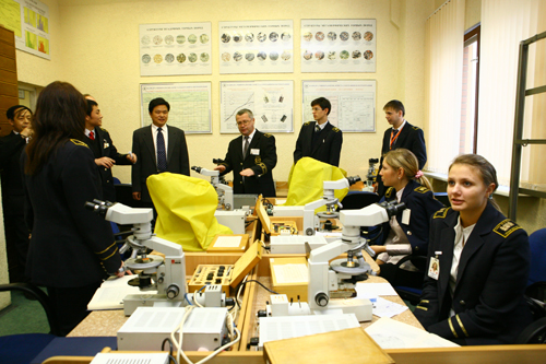 在考察期间,给代表团感触较深的是这些学校非常注重校园文化建设,具有深厚的文化底蕴。在莫斯科矿业大学的地质博物馆,各种珍贵的矿物及化石标本、工艺品琳琅满目,看得出近百年积淀的文化底蕴。这些矿物标本搜集渠道有多种,除了购买之外,很大一部分来自校友或其他人士捐赠,学校发给证书,在展柜中誌名留念并加以说明。学校的馆藏珍品因此而日渐丰厚,学子的爱校情怀由此而得以寄托。