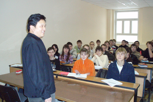 让中国矿业大学(北京)走出国门,提高国际影响力和知名度,也是代表团的重要使命。出访期间,代表团每到一处都不忘宣传学校。当参观学生教室时,陪同人员向在座学生介绍了代表团,大家马上起立致意。乔建永校长即兴发表演讲,介绍了我校的情况,欢迎大家到中国留学,并把“中国矿业大学(北京)”的校名拼写在黑板上,给俄罗斯的学生留下了深刻的印象。成功的演讲赢得在场人员的热烈掌声。