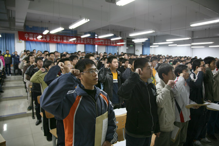 11月20日下午,我校2007年“国家助学贷款合同签订仪式暨诚信宣誓大会”在教学楼B114教室举行。中国银行中关村科技园支行行长翟星、副行长孙革非,我校学生工作处副处长张晓红出席了签约仪式。中国银行信贷科、校学生资助管理中心及各学院有关辅导员参加了会议。