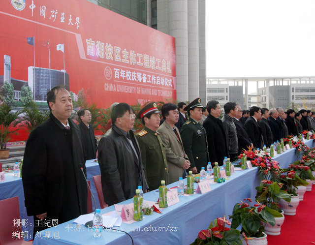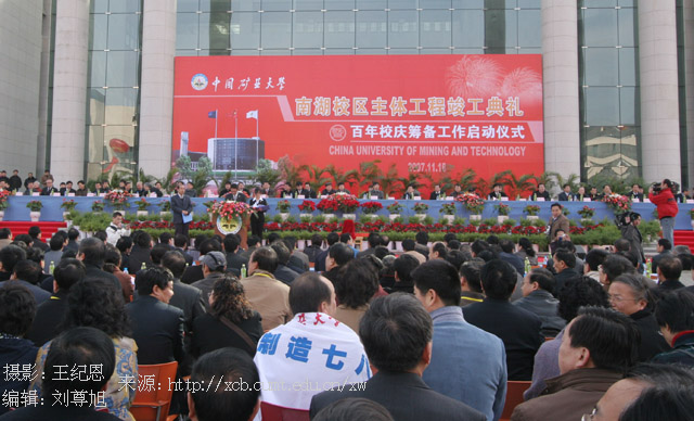 古彭徐州,初寒料峭;南湖校园,彩旗招展。11月18日,中国矿业大学南湖校区主体工程竣工典礼暨百年校庆筹备工作启动仪式在新落成的南湖图书馆门前隆重举行。中国矿业大学的发展在新世纪正奔向新的跨越。