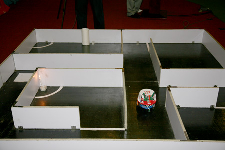6月7日下午,我校2007大学生机器人挑战赛暨第三届“创新杯”大学生科技文化节闭幕式在国际交流中心报告厅举行。校党委书记张保军、校长乔建永、副校长杨仁树、党委副书记范迅出席会议并为获奖团队和个人颁奖。学校有关部门、学院负责人,学校大学生科技活动及学术实践导师团指导教师代表、各学院团委书记及200余名学生现场观看比赛并参加了闭幕式。 本次机器人挑战赛采用国际比赛规则,模拟现实中机器人灭火的过程,参赛机器人在4间平面结构的模型房间里自主地寻找任意放置的蜡烛,并设法熄灭蜡烛,然后回到出发点,以用时多少、灭火方式等决定参赛队伍的名次。