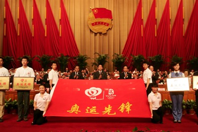 开幕式上,少先队员代表向大会献词,北京市总工会党组书记、副主席张建民同志代表群众团体向大会致贺词。开幕式上,出席大会的领导还向首都团员青年代表授“奥运先锋”旗帜,并为21家“奥运先锋”优秀青年集体颁牌。开幕式前,与会领导与代表们亲切合影。