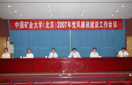 5月15日下午,我校在国际交流中心报告厅召开2007年党风廉政建设工作会议,回顾总结学校2006年党风廉政建设工作,部署2007年有关工作。党委书记张保军,校长乔建永,副校长安里千、杨仁树、孙继平,党委副书记范迅出席了会议并在主席台就座。党政机关及教辅单位副科级及以上干部、党支部书记,各学院负责人、科级以上干部、系主任、党支部书记,人事、财务等部门全体工作人员参加了会议。会议由乔建永主持。 范迅首先在会上总结和回顾了学校2006年党风廉政建设工作,并对2007年党风廉政建设工作进行了全面部署。他指出,2006年,学校党风廉政建设工作紧紧围绕学校中心工作、贯彻落实《实施纲要》,在加强宣传教育、建立和完善惩防体系、加大重点部位监察、治理商业贿赂、加强信访和案件查办以及队伍建设等方面都取得了长足进展,在学校教学、科研、管理及各项工作中起到了重要作用。2007年党风廉政建设和反腐败工作的总体思路是坚持以邓小平理论和“三个代表”重要思想为指导,深入贯彻党的十六届六中全会和中纪委第七次全会精神,坚持科学发展观,以构建和谐校园为主题,紧紧围绕学校中心工作开展纪检监察工作;坚持标本兼治、综合治理、惩防并举、注重预防的方针,立足教育,着眼防范,强化监督;以改革创新和制度建设为重点,全面落实《实施纲要》,积极推进惩防体系建设,不断加大反腐倡廉的工作力度,为保证学校事业持续、协调、稳定、健康发展服务。