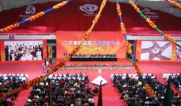 3月3日下午,2007年北京高校奥运工作推进会在清华大学综合体育馆隆重举行。北京市委常委、教育工委书记、北京奥运会培训工作协调小组组长朱善璐,中残联理事长、奥组委执行副主席、奥运培训工作协调小组副组长汤小泉,奥组委执行副主席、奥运培训工作协调小组副组长李炳华出席会议并讲话。会议由北京市教委主任刘利民主持。 此次会议由中共北京市委教育工作委员会、北京市教育委员会、共青团北京市委员会联合举办。我校党委副书记范迅与北京82所高校的党委书记、校长、奥运工作主管校领导,宣传部长、学生工作部部长、教务处长、研究生工作部部长、团委书记以及包括我校100多人在内的2600多名大学生志愿者代表参加了会议。