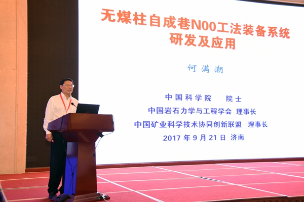 9月21日学术大会正式开幕,会议由中国岩石力学与工程学会常务副秘书长、中国矿业大学(北京)杨晓杰教授主持。中国科学院院士、中国岩石力学与工程学会理事长、中国矿业科学协同创新联盟理事长何满潮教授致欢迎辞,何满潮院士介绍了中国岩石力学与工程学会紧紧围绕《中国科协2017年学会改革工作要点》的文件精神,结合自身实际制定了学会改革任务,要举办全国性学术大会,搭建高水平学术交流平台,打造一流学术交流品牌。此次会议设立了软岩分会分会场、防热害专委会分会场、地下工程分会场、山东岩石力学与工程学会分会场,集“技术培训—学术报告—工业展览”三位一体。通过技术培训,引领行业技术进步;通过学术交流,引领学科发展方向;通过工业设备展览,引导科学技术的全面创新、工业化应用和推广。山东大学副校长李术才教授代表大会承办单位致辞。大会对创新联盟新入盟的9家理事单位、软岩分会2家常务理事单位、3家110工法专利池授权单位颁发了牌匾。大会还对软岩分会和创新联盟的优秀个人进行了表彰。