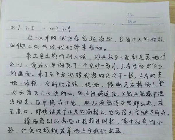 2017年7月9日,第一批试住的学生进入沙河校区,在一天一夜的试住中还举办了篮球赛。在进入沙河校区宿舍的时候,王姐听到学生们纷纷赞叹到“这宿舍条件真好啊!”
