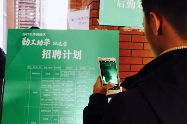 本次学生勤工助学双选会是沙河校区的首届双选会,受到了了师生的广泛关注。双选会利用学生事务管理系统,采用线上申请,线下面试的模式,为学生和用工部门之间搭建了良好的沟通桥梁,使学生从岗位申请到被单位录用更加方便、快捷。在双选会的筹备过程中,学生资助管理中心利用资助网站以及“矿大北京学生管理与资助”微信公众号提前发布了勤工助学双选会的流程、招聘计划和注意事项,让学生事先了解勤工助学双选会的具体安排,更加明确地做出对岗位的选择。双选会伊始,学生本人携带《勤工助学个人岗位申请表》,到有意向的用工单位前投递申请表并接受用工单位的现场面试。在现场的工作人员的引领和指导下,学生井然有序地排队、面试。