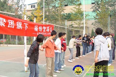 10月21日,管理学院在排球场开展了“相聚团旗下,凝结管理心”主题团日活动。院团委为08级本科新生举办了旨在加强沟通交流和团队合作的拓展训练,院党总支部书记朱李平、团委书记赵麟、辅导员李俊峰到场参加。