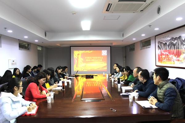 座谈会上,思政硕党支部成员代表以中国共产党党内民主的历史沿革与当代党内民主发展的创新之处为主线,纵向介绍了各自对于党内民主建设的认识和理解,并横向比较了西方政党党内民主的特点。思政硕党支部书记张筱苑同学介绍了其支部建设及实践活动,展示了思政硕党支部成员认真学习党的理论知识、继承党内民主建设优良传统、结合本支部特色不断深入实践所展开的一系列活动。