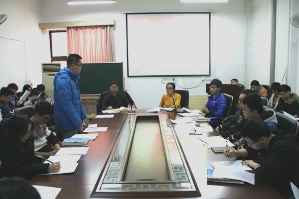 本网讯12月9日,资源学院本科13级党支部在综合楼406室举行“十八届六中全会精神”主题学习活动,校党委组织部部长邹得志作为支部联系人参加学习讨论。