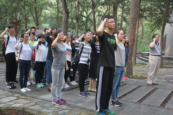 在庄严的一二九运动纪念碑前,文法新生聆听了董书记和16级新生代表的讲话,并在纪念碑前宣誓,并于十一点返回到东南门集合上车返校,本次活动圆满结束。