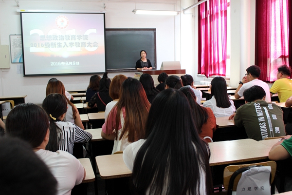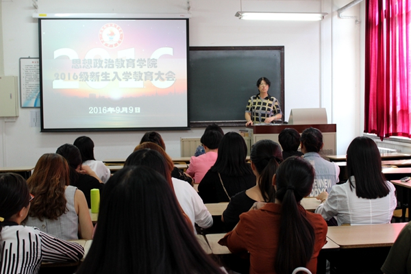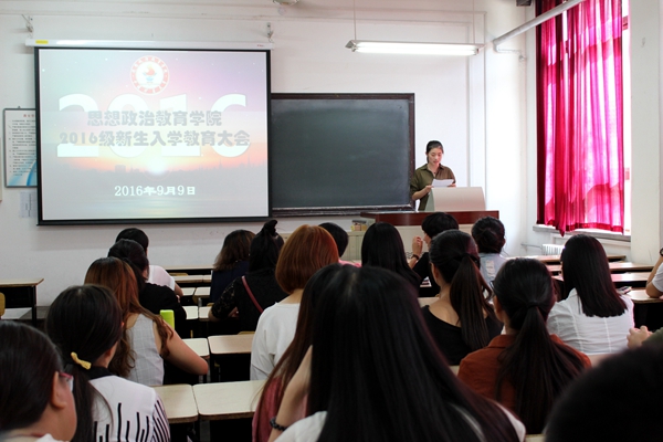 本网讯9月9日上午9点半,思政学院新生入学教育大会在民族楼311教室开展,院长田霞教授、党总支书记李妍教授、学院办公室主任盖逸馨老师、学院教学秘书郑宏老师、学生辅导员李晓倩老师及2016级班主任邬巧飞老师出席了新生见面会,大会由学院学工办主任项丽娜老师主持。