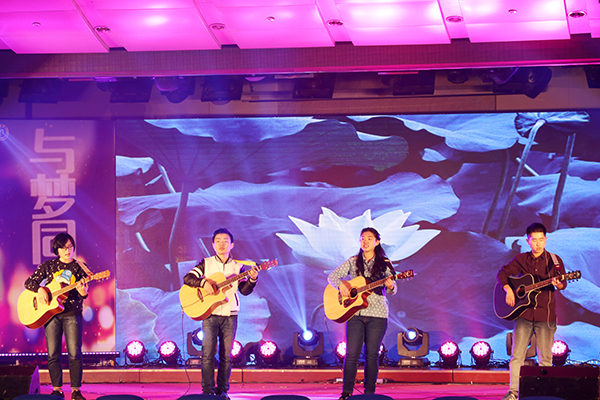 晚会由“Exellent”、“Creative”、“Stronger”三个篇章组成,每一篇章中,颁奖、文艺表演和班级送祝福交替进行,寓教于乐。文艺表演形式丰富,内涵深远,吉他短剧弹唱《蓝莲花》奏出激情四射的梦想之声,萨克斯四重奏传达着婉转悠扬的活力之韵,校园十大歌手献唱《山丘》,歌声激昂有力、勇攀新高,小合唱《贝加尔湖畔》清新怡人、婉转悠扬,莫雷钰老师献歌一曲《太阳最红》,值毛主席诞辰122周年之际,表达学院师生对他的敬意;“班级送祝福”互动环节烘托出一派喜气盈盈过新年、暖意浓浓送祝福的节日气氛,场下主持人现场采访学院各年级博士生、硕士生、本科生班级,各班级结合朗诵、合唱、方言等多种表现形式,为大家送上一个又一个新奇吉祥的新年祝福,现场气氛其乐融融。