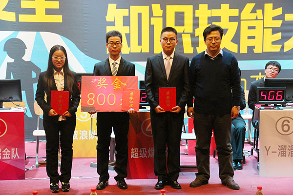 本次由校团委主办、资源学院团委承办的采矿与安全知识技能大赛是我校第十一届“创新杯”科技文化节系列活动之一。知识技能大赛策划准备约一个多月,经过初赛评选,从全校各学院报名参赛的400多名同学中选拔出八支队伍、24名选手进入决赛。赛场上各个环节设计别出心裁,比赛激烈紧张、争分夺秒,紧紧牵动在场观众的每一根神经;视频题、操作题等新颖的比赛方式更是巧妙地考察了各位选手对采矿、安全相关知识的掌握和应用能力。各小组充分发挥聪明才智,配合默契,精彩不断,赢得台下阵阵热烈掌声和欢呼,同时也将本次知识技能大赛推向高潮。经过激烈的角逐,第六小队“Y-溜溜溜”队赢得季军,第八小队“煤问题”队取得亚军,第二小队“矿安掘金队”队夺得冠军。学院老师为在本次采矿与安全知识技能大赛中的最佳人气团队及前三名的队伍颁奖。