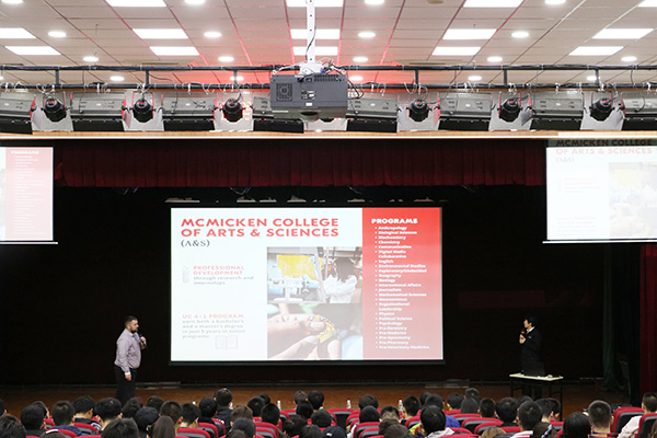 本网讯 11月16日下午15:30,地测学院“国际交流项目讲座”在沙河校区学生活动中心举行。此次讲座的主要内容是辛辛那提大学留学项目介绍及申请经验交流,由辛辛那提大学国际学生招生处副主任Jason Chambers主讲。辛辛那提大学国际学生招生处主任Jon Weller,地测学院党委书记崔希民、党委副书记杨向东、17级本科生辅导员胡媛、18级本科生辅导员王尧葵、信延儒出席,与本科17级、本科18级同学一同参与聆听本次讲座。