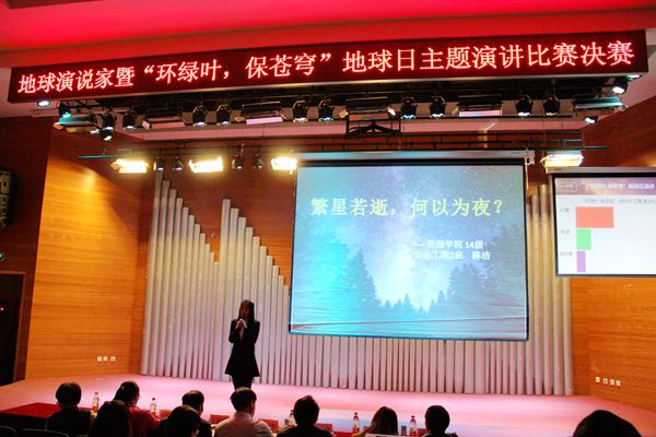经过前期激烈的初赛、预赛的选拔,共十五位选手晋级决赛。他们实力不凡,特色鲜明,在比赛中,选手们用“我是演说家”的形式,用丰富生动的语言表达了对今年世界地球日的主题—“珍惜地球资源 转变发展方式——提高资源利用效益”的独特看法。满腔的热情,激昂的演讲,将现场不断带入高潮,掌声不断。选手们不仅道出了“世界地球日”的意义所在,更提及当下中国环境所面临的严峻问题,让大家对身边的地球、赖以生存的环境有了更加深刻的认识。