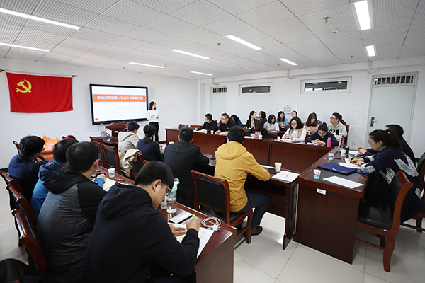 本网讯 为进一步加强就业指导课程师资队伍建设,提高教师的教学水平,提升我校就业指导课程教学质量,4月14日,学生工作处大学生就业创业指导中心在逸夫楼1537开展了就业指导师资集体培训。大学生就业创业指导中心主任高洁、地测学院党委副书记杨向东、化环学院党委副书记姜骑山以及学工系统有意愿参与授课的30余名老师参加了本次培训。