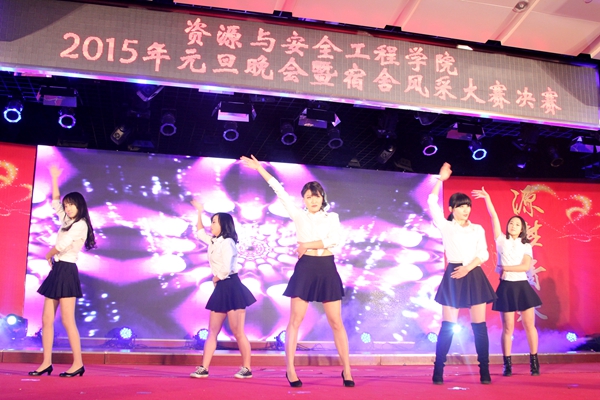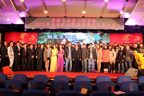 12月21日晚,资源与安全工程学院“舞动英姿,源梦青春” 2015年元旦晚会暨我爱我家宿舍风采大赛决赛在科技会堂举行。院党委书记傅贵,学工处副处长刘海娟,副院长秦跃平、朱红青,矿业工程系党支部书记许延春出席了晚会,与众多学子一起欢送2014,迎接2015。
