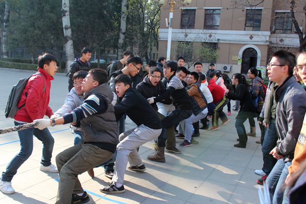 为促进学生之间的交流,增强同学们对班级的归属感与荣誉感,11月19、21、22日中午,管理学院在民族楼前广场举行了拔河比赛。比赛由管理学院团委学生会组织,10个本科生班级积极参加。