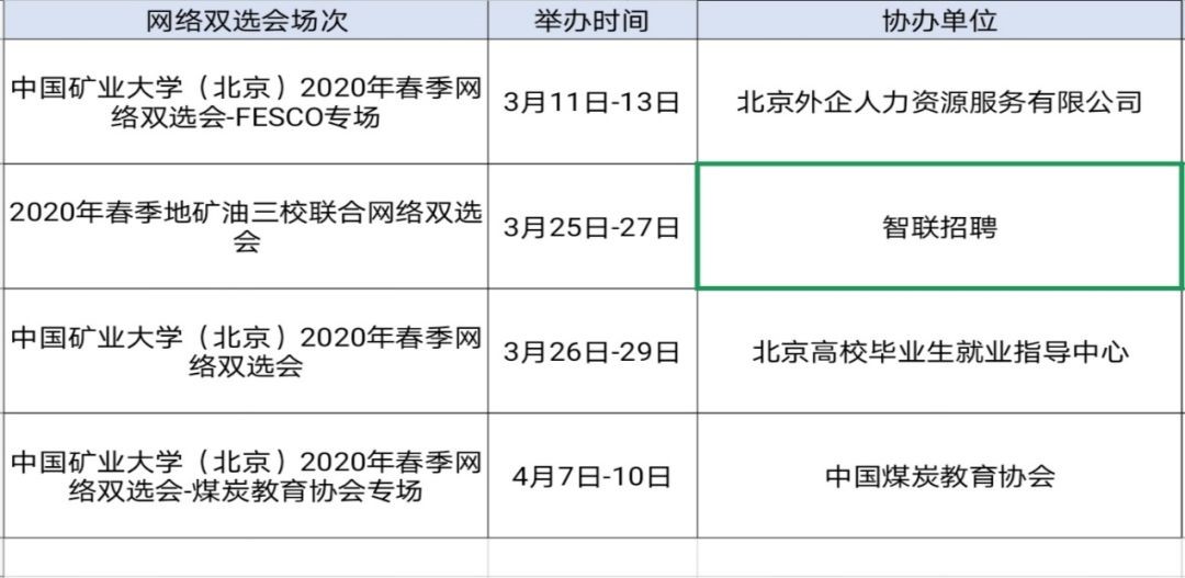 近期学校会举办各类网络招聘活动,具体场次时间如下: