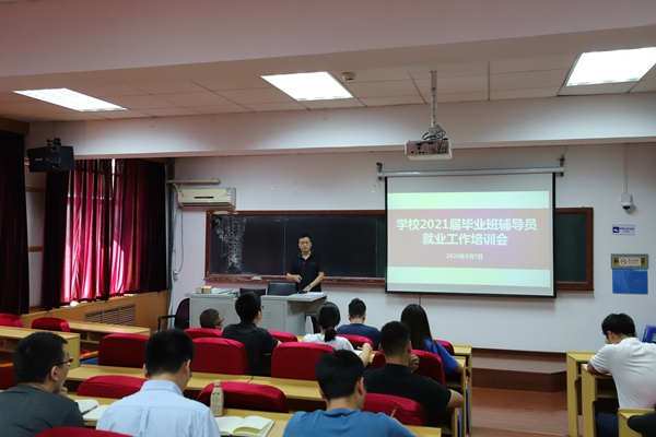 本网讯 为全面启动学校2021届毕业生就业工作,9月7日下午,学校2021届毕业班辅导员就业工作培训会在理化楼306室组织召开。学工处处长安宇、大学生就业创业指导中心工作人员以及2021届全体毕业班辅导员参加了本次培训。培训会由学工处副处长童军武主持。