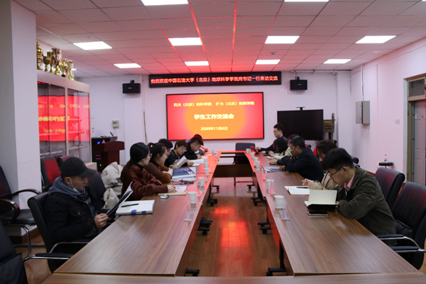 本网讯 11月6日下午,中国石油大学(北京)地球科学学院党委副书记周学智、团委书记费葳葳、辅导员姚梦竹、刘俊鑫、朱锐、杨冀宁、高思航一行七人到我校地球与测绘工程学院走访交流。学院党委副书记杨向东、学工办主任徐春光、团委书记陆雪松、学院专职辅导员胡媛、刘博秒、王尧葵参加了交流活动。