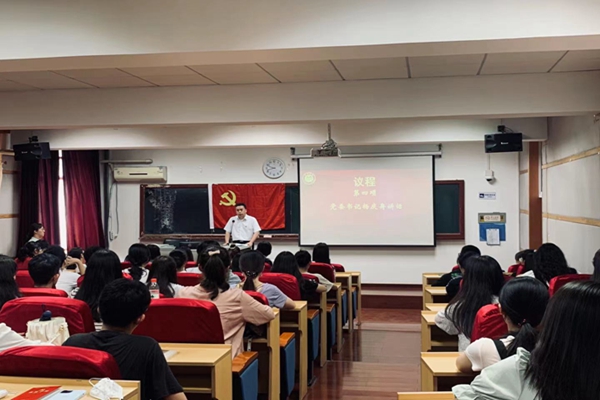 仪式上,博士新党员石芬芬带领全体预备党员面向党旗,举起右拳,郑重进行入党宣誓。新党员代表18级本科生孙傲璇发言,他表示作为新时代的青年学子,作为肩负中华民族伟大复兴重任的中国共产党员,将进一步坚定共产主义伟大理想,用青春的力量服务祖国和人民。