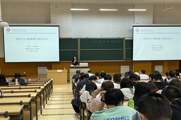 本网讯 9月14日下午,我校心理健康教育咨询中心在沙河校区教学楼一教327、519和521召开了2021级研究生心理健康宣讲会。讲座由心理健康教育咨询中心主任刘海娟、副主任曲佳和赫子铭主讲,共计六场,各学院全体2021级研究生共计2900余人参与讲座。