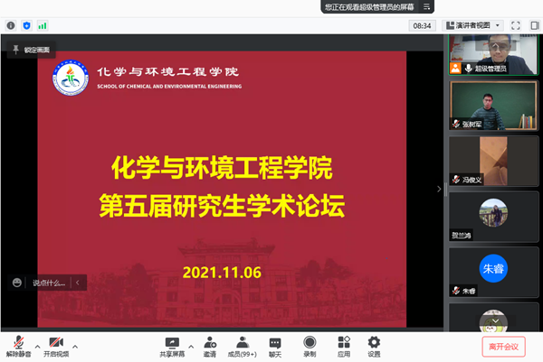 本网讯 11月6日上午,中国矿业大学(北京)化学环境工程学院第五届研究生学术论坛暨“天鹰-芬雷基金优秀科技论文”评选活动举行。本次论坛由化学与环境工程学院主办,化学与环境工程学院研究生会承办。研究生院常务副院长徐志强教授、化学与环境工程学院党委书记赵亮、副院长王卫东教授和化环学院各系主任、副主任、青年教师,和广大博士研究生、硕士研究生近700人参加本次线上论坛活动。西南科技大学徐龙华教授、北京城市排水集团张树军教授级高级工程师、北京分子科学国家研究中心冯佳奇博士三位学者受邀出席论坛。主会场由赵亮致开幕词,徐志强致词,王卫东主持。三个分会场进行研究生优秀科技论文报告及答辩。