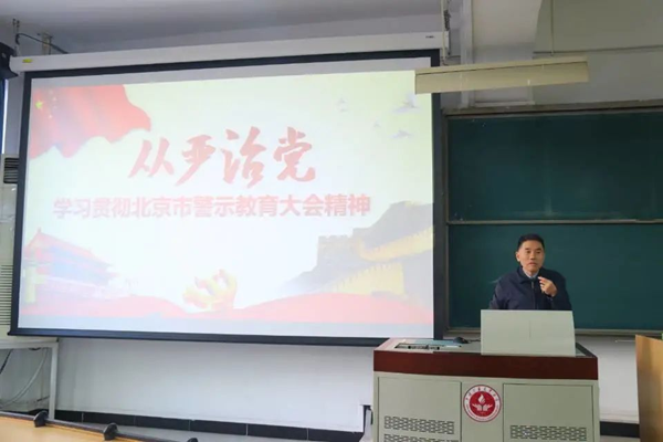 单仁亮指出,在北京市委召开全市警示教育大会上,市委书记蔡奇做了重要讲话,深入分析了当前我市全面从严治党面临的严峻复杂形势,严肃指出了存在的八个方面主要问题,深刻剖析了违纪违法案例背后的根源,对始终保持“严”的主基调,持之以恒推动全面从严治党向纵深发展做出了系统部署,提出了明确要求。为深入贯彻落实会议精神,学院党委决定在全院范围内开展警示教育活动。