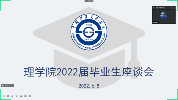 6月8日上午8:30,学院在线上召开2022届毕业生代表座谈会。院长李再兴、院党委书记张蕊参加座谈会并讲话。24名毕业生代表参加会议,毕业班辅导员张殿勋主持会议。