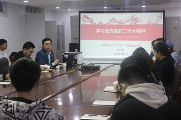 本网讯 为深入学习贯彻落实党的二十大精神,3月5日晚,马克思主义青年读书会在学院路校区逸夫楼1217,组织开展“学习党的二十大精神”理论学习活动,读书会指导教师曾庆桃担任主讲,读书会成员及校内外40余名师生参加活动。活动由读书会学生社长毛莹主持。