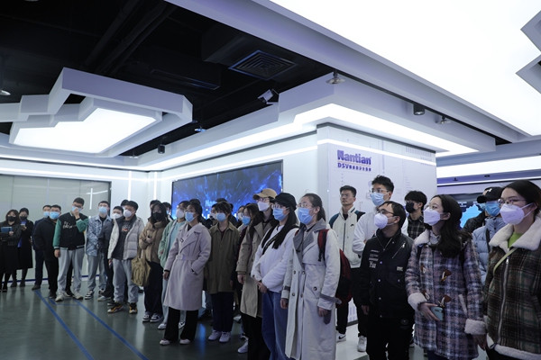 理学院和机电学院近40位师生参观了南天信息数字体验中心,了解了南天信息50余年的发展历程、企业文化、产品与解决方案等,身临其境地感受到南天信息以“金融科技”和“数字化服务”为业务主线,致力于在金融、政府、交通、医疗、教育等领域为客户提供贯穿其IT建设全生命周期的“一站式”数字化服务。