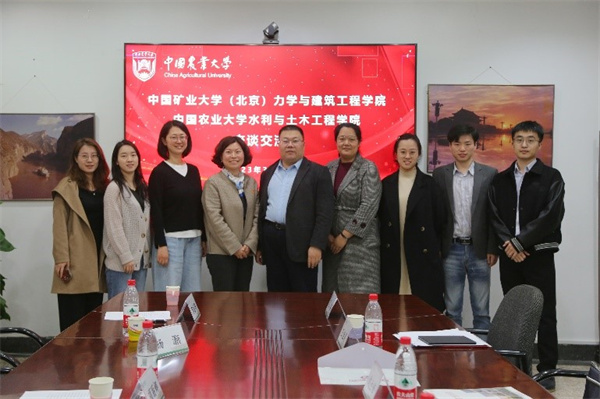 中国农业大学水利与土木工程学院党委书记沈立峰表示中国农业大学水利与土木工程学院与中国矿业大学(北京)力学与建筑工程学院专业学科对应、地理位置较近,具有深厚的亲缘关系。希望今后在文体活动、学生工作、党建活动等各方面进一步加强调研与学习交流,构建双方协同沟通机制。中国农业大学水利与土木工程学院党委副书记张立伟从党团建设、学科建设、专业特色等方面介绍了该学院的整体情况。力学与建筑工程学院党委副书记项丽娜从辅导员队伍构成、学科建设、专业发展等方面介绍了力建学院概况。双方围绕学生教育管理特色工作、辅导员职业发展、大学生心理健康与深度辅导、大学生就业创业等方面进行了深入细致交流,对工作中遇到的重点难点问题进行了研讨。