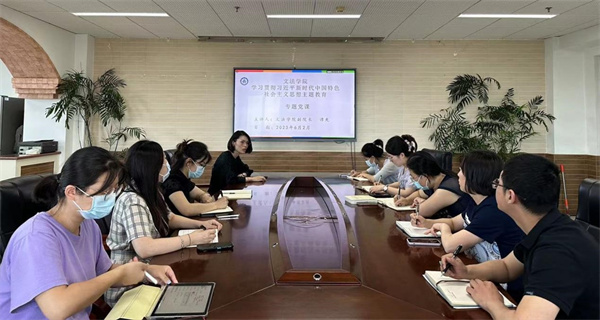 6月2日下午,文法学院副院长谭爽于逸夫楼1214为文法学院院办党支部成员讲授“学习贯彻习近平新时代中国特色社会主义思想主题教育”专题党课。