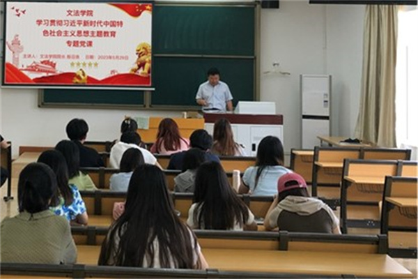 本网讯 为深入开展学习贯彻习近平新时代中国特色社会主义思想主题教育,进一步提升学生党员理论素养,5月29日,文法学院院长殷召良在沙河校区教学楼201为法律硕士22级党支部讲授主题教育专题党课,支部全体党员、发展对象和积极分子20余人参加党课学习。