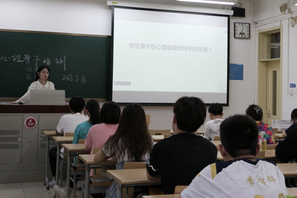 2023年5月,各学院分别组织开展了加强学生骨干心理健康知识以及危机干预技能的培训。培训着重强调了班团干部在学生心理工作中的重要作用,老师们对心理骨干们提出了工作要求并做出具体指导。通过老师们的讲解,学生骨干了解了常见的大学生心理问题和精神疾病种类以及相应的症状表现,提高观察、判断和应对常见心理问题的能力,学习了危机识别和应对的技巧。参与的同学们纷纷表示培训让自己有了收获丰硕。