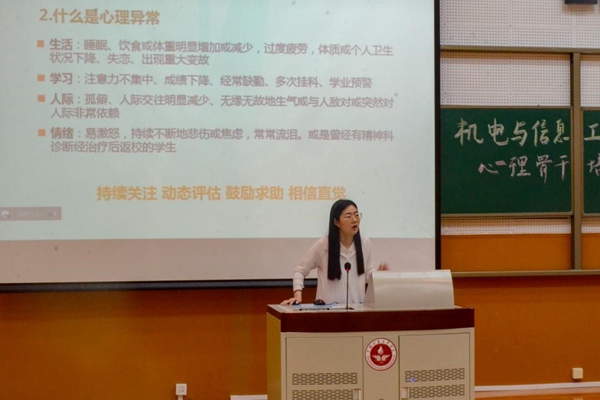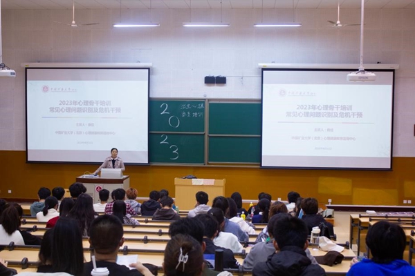 为增强我校学生心理骨干对心理健康知识的了解,提升其解决实际问题的能力和水平,4月11日,心理中心分别在学院路校区和沙河校区举办了2023年学生心理骨干培训讲座,讲座主题为“常见心理问题识别及危机干预”。讲座由心理中心刘海娟、曲佳、赫子铭和杨蕊4位专职老师主讲,共计4场,近500名本硕年级学生心理骨干参会。此次培训从“理解心理健康”“大学生常见的心理问题”“理解心理危机”三个方面展开讲述。培训为参会的学生心理委员普及了心理知识,说明了心理健康的重要性,并加强了心理骨干的队伍建设,有利于提升心理委员在工作中统筹全局的能力,提高心理健康活动的品质,为我校夯实心理健康教育工作奠定扎实基础。