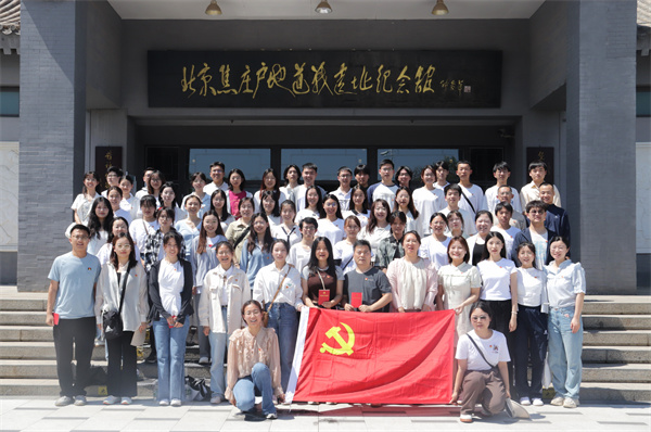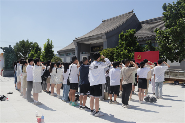 本网讯 为深入推进学习贯彻习近平新时代中国特色社会主义思想主题教育,以昂扬奋进的姿态庆祝建党102周年。6月30日下午,管理学院组织2023年新发展和转正党员62人前往焦庄户地道战遗址纪念馆学习参观并举行入党宣誓仪式。管理学院党委副书记李邦三、专职组织员崔艳娜、学工办主任李烁玮以及各年级级辅导员参加了此次活动。