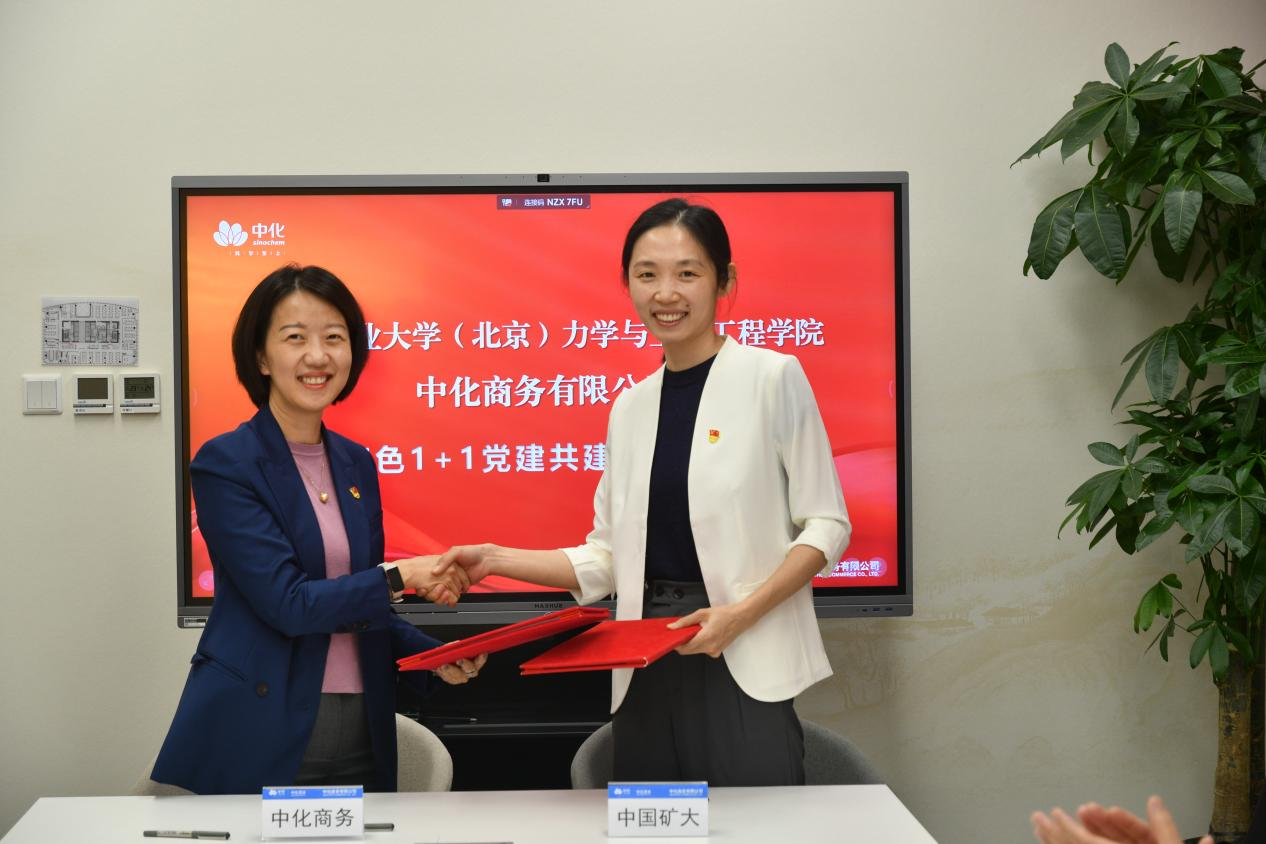 李帅对中化商务有限公司二十多年的快速发展表示祝贺,对近年来吸纳学院多位毕业生表示感谢。她详细介绍了学校百余年来的发展历史,从学科发展、人才培养、科研创新等方面对学院发展进行了介绍。她指出,学院党委根据上级要求,深入开展学习贯彻习近平新时代中国特色社会主义思想主题教育,一体推进落实理论学习、调查研究、推动发展和检视整改,切实将主题教育激发的昂扬斗志和热情干劲转化为加快推进学院高质量发展的新动能。学院近期进行了主题教育总结,后续学院将和公司保持密切联系,在党建工作方面加强联动,推动校企合作走深走实。
