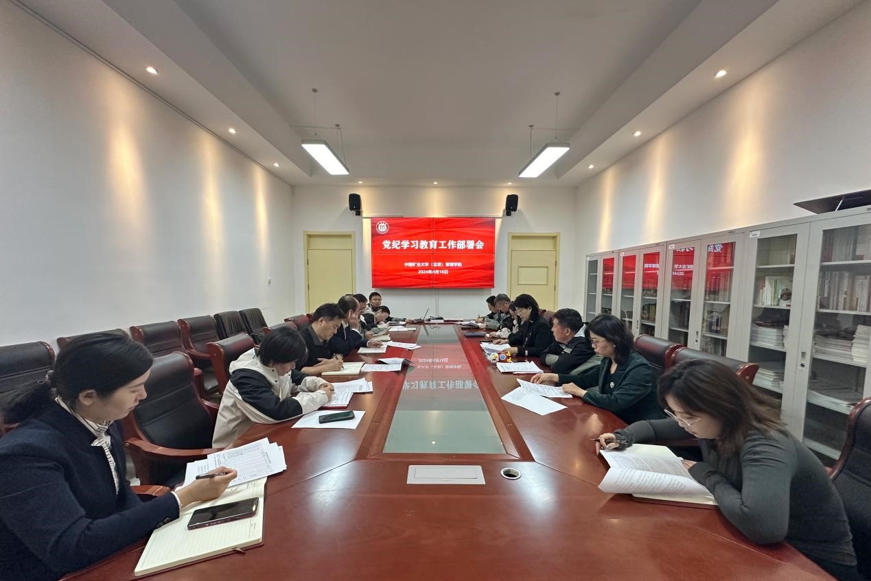 会议传达学校《关于开展党纪学习教育的通知》《关于开展党纪学习教育的工作方案》要求,部署学院党纪学习教育主要工作安排。