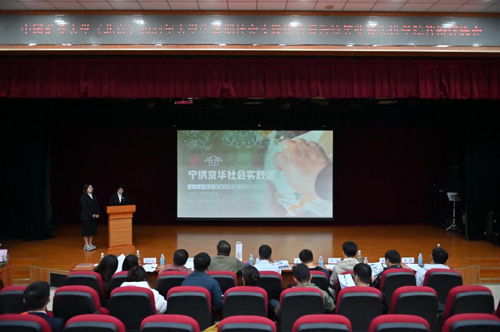 答辩由项目展示和评委提问两个环节组成。21支实践团队逐一展示项目,围绕乡村振兴、生态保护、红色文化、非遗传承、基层建设、科技创新等主题,简述实践背景和实践地,着重介绍实践报告形成过程、实践方法及成果、实践创新点及亮点。10个参评学院代表从社会实践总体安排、前期动员、实践概况、媒体报道、亮点成果、未来展望等方面依次汇报答辩。汇报主题鲜明、图文结合、数据翔实、亮点突出,评委针对实践活动内容和成果进行提问,给出建设性意见建议,并寄予矿大学子勇担时代责任、追逐青春梦想、为以中国式现代化全面推进强国建设、民族复兴伟业挺膺担当的殷切期望。