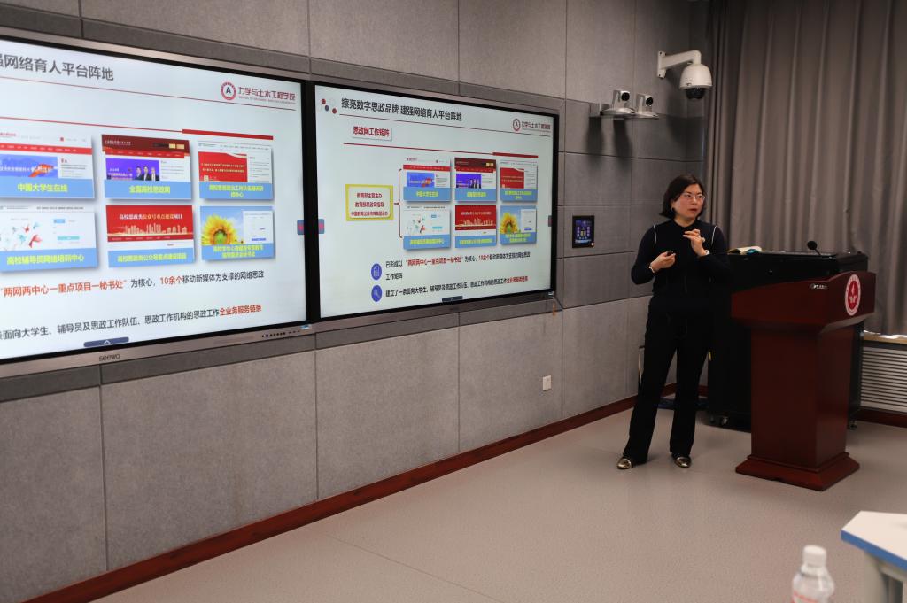 2025年1月9日上午,学校举办主题为“数字化赋能网络思想政治教育能力提升”辅导员沙龙,力学与土木工程学院党委副书记项丽娜做培训汇报分享。项丽娜从新时代下的网络特点出发,说明人工智能技术对思政教育带来的机遇和挑战,分享全媒体时代下的网络舆情特征和网络舆情突发事件的应对策略,详实介绍辅导员如何借力数智技术,提升网络思政育人能力,以数字化赋能思政工作高质量开展。