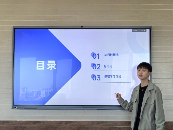 在经验分享环节,首批外派学生代表潘成龙和刘嘉玲结合自身经历,详细介绍了在比利时蒙斯大学的学习生活。潘成龙重点分享了参与欧盟多语言交流项目的实践收获,强调语言能力与团队协作的重要性;刘嘉玲则从课程设置、教学模式、校园生活等方面,生动展现了蒙斯大学注重互动与实践的教学特色。