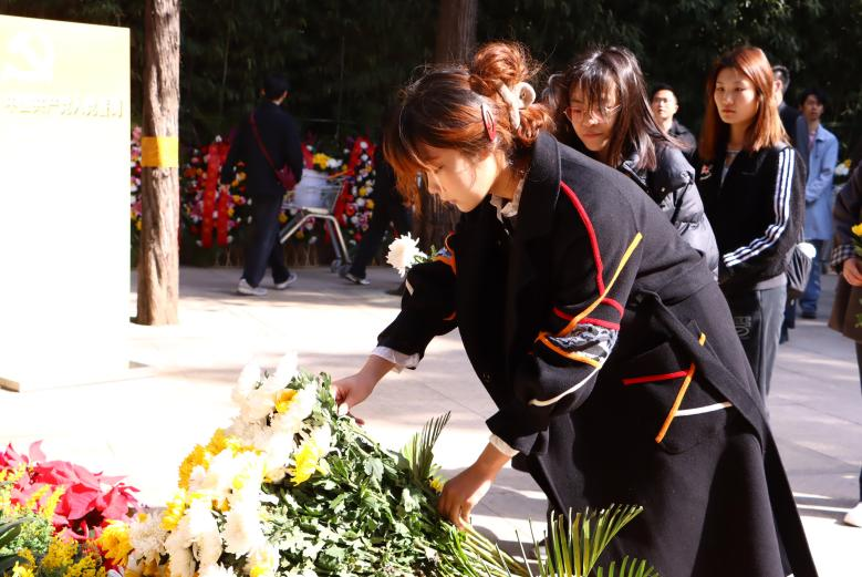 贤士抱洁志,万古凛清风。在烈士雕像前,师生代表托举花篮缓缓走向纪念碑,将花篮轻轻摆放在纪念碑基座前。在庄严肃穆的氛围中,全体师生肃立,向革命先烈默哀,致鞠躬礼。随后,大家逐一上前,将鲜花献给这位中国共产主义运动的先驱、伟大的马克思主义者,以此表达对革命先烈的深切缅怀和崇高敬意。