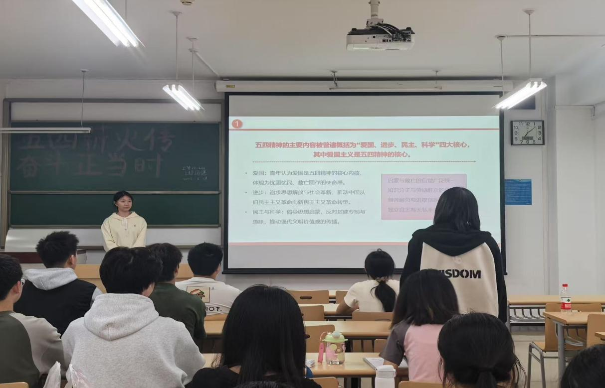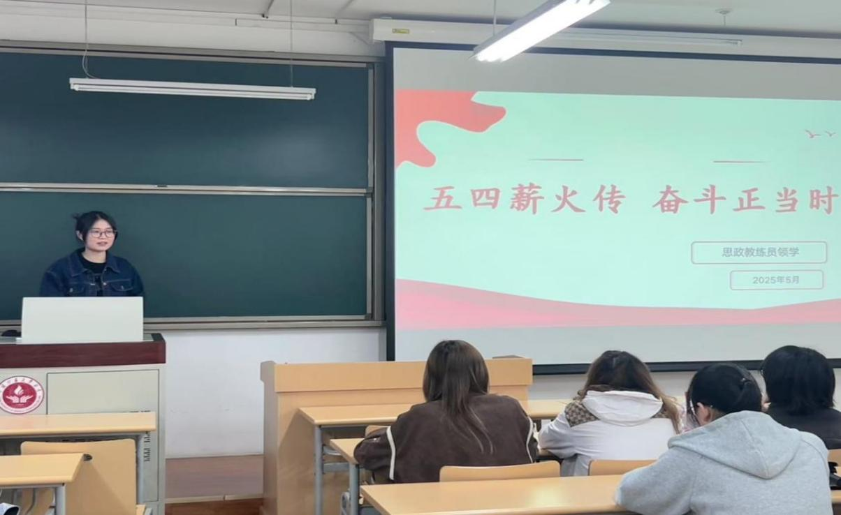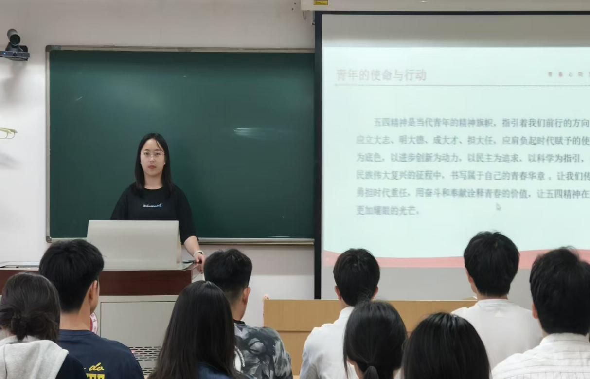 活动以纪念五四运动106周年为契机,各团支部围绕“五四薪火传 奋斗正当时”的主题开展系列活动。“思政教练员”深入各团支部指导并参与团课学习11次,结合党史、团史,解读“五四精神”的时代内涵,从理论高度和实践角度为同学们带来生动领学,展现“思政教练员”的多维赋能价值。“思政教练员”对主题学习课件从政治性、思想性、教育性进行把关和优化,和团支书一起设计活动形式,采用“猜歌名”“历史事件问答”“朗诵五四宣言”等互动形式让理论学习“活”起来。