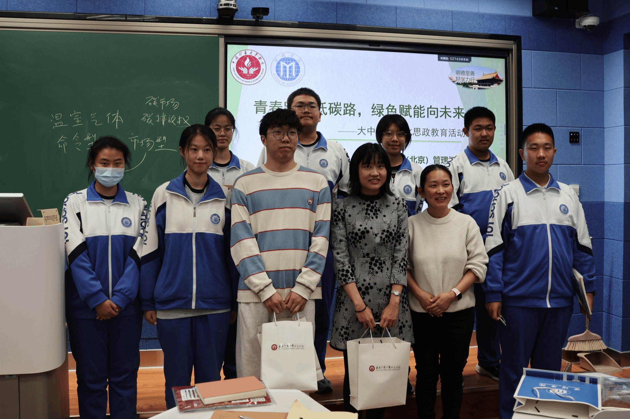 本网讯 11月27日下午,中国矿业大学(北京)管理学院与北京一零一中矿大分校联合举办了题为“青春践行低碳路,绿色赋能向未来”的大中小一体化思政教育研究课,旨在引导高中生树立绿色低碳理念,并助力其未来高校专业选择。课堂在北京一零一中矿大分校进行,由地理教研组长袁乃念老师主持,管理学院许悦老师、硕士研究生许紫浩主讲,北京一零一中矿大分校部分教师、高中生30余人参与此次活动。