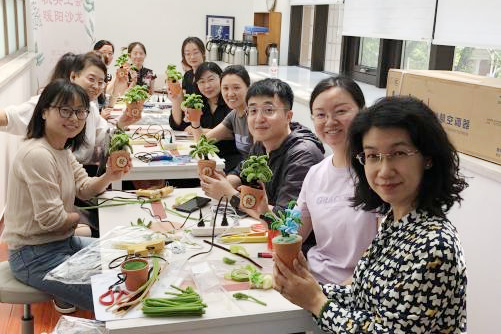 本网讯 为传承中华优秀传统文化,丰富教职工精神文化生活,近日,机关工会在2号办公楼工会之家举办了“暖阳沙龙”第六场活动——“以兰为廉,凭树聚财”扭扭棒盆栽手工制作活动。本次活动作为校工会“职工美好生活大讲堂”的延续,将廉洁文化与吉祥寓意融入创意手作,吸引了机关各工会小组教职工积极参与。