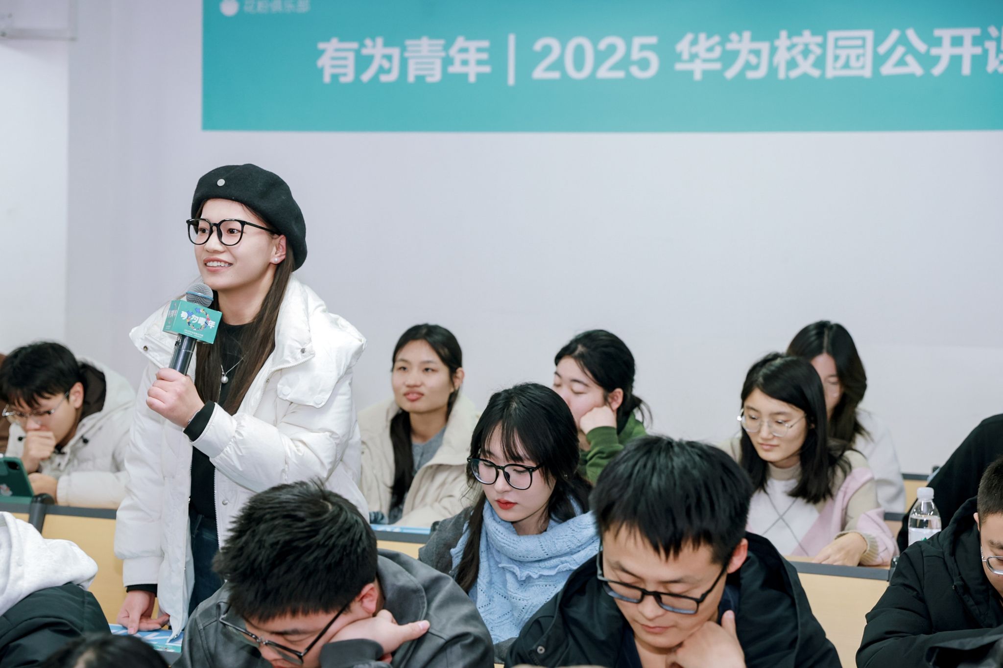 在互动交流环节,同学们围绕隐私安全、跨专业学习、系统体验、AI智能体整合、生态合作、职业能力等话题踊跃发问。针对“小艺帮帮忙”的隐私问题,黎晓霞强调“安全是华为的底线”;对于非计算机专业学生的入门困惑,她建议“多动手,像刷题一样练习”;关于生态合作中的竞争与平衡,她坦言这是“商业模式的探索,需要找到共赢点”。