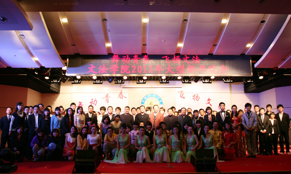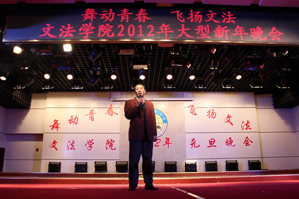 12月18日晚,文法学院2012年大型新年晚会在科技会堂四层举办。清华大学人文学院程刚老师、校党委宣传部部长董会泽、校学工处处长陈浩、副处长刘海娟、院党总支书记兼院长赵明学教授、院党总支副书记李妍教授及各学院相关部门老师和辅导员莅临晚会现场,校、各学院学生会成员一同观看了晚会。